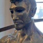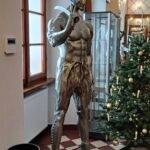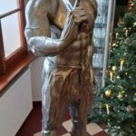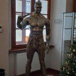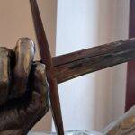 The sculpture Hussar (19.XII.2021) is a monumental piece celebrating one of the most iconic warriors in Polish history – the Hussar. The muscular figure holding a “batorówka” saber honors this elite cavalry, renowned for their unmatched effectiveness on European battlefields. The expressive face and hollow eye sockets of the hussar reflect deep contemplation over the fate of the Polish-Lithuanian Commonwealth, echoing the sentiments captured in Jan Matejko’s painting Stańczyk.