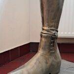 The sculpture portrays the Hussar with remarkable historical accuracy. The warrior wears traditional “portki” pants with buttons, historic boots, and holds a saber in his right hand. His hairstyle – the “czupryna” – references the signature look of Polish nobility. The defined musculature and visible veins symbolize the rigorous training that prepared Hussars for their role as defenders of their homeland.